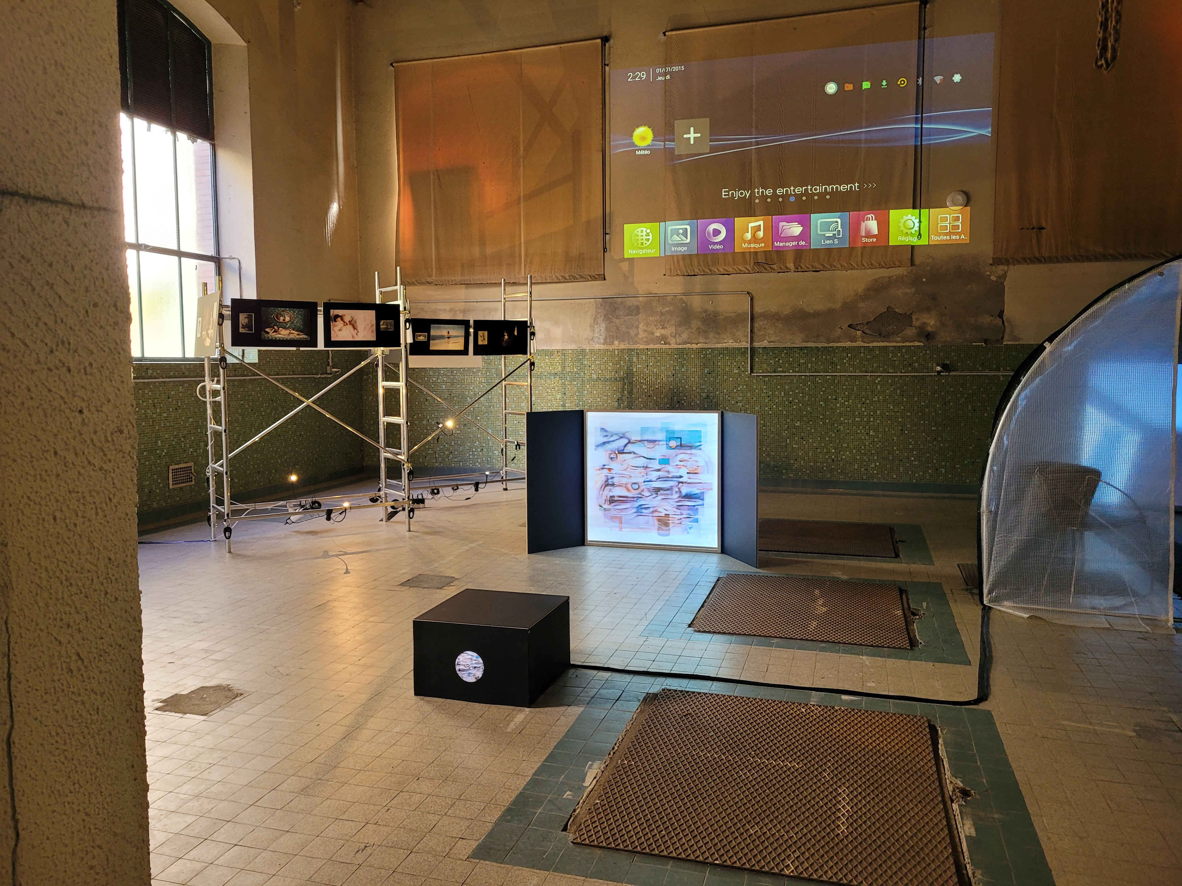 Vue de l'installation présentée lors du festival Traverse video, Ancien Réservoir de Guilleméry, Toulouse, 2023