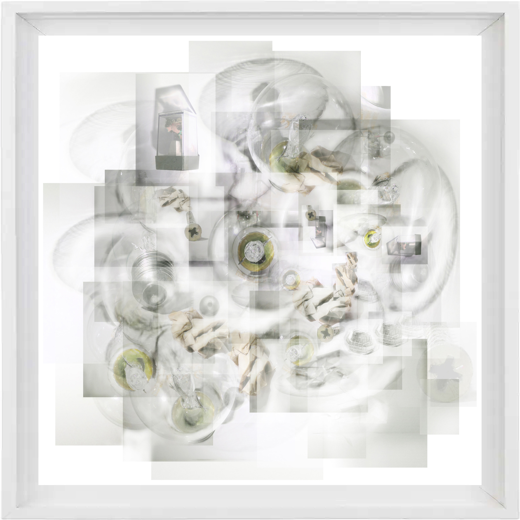 Tirage jet d'encre sur panneau Dibond blanc, 50×50 cm.
