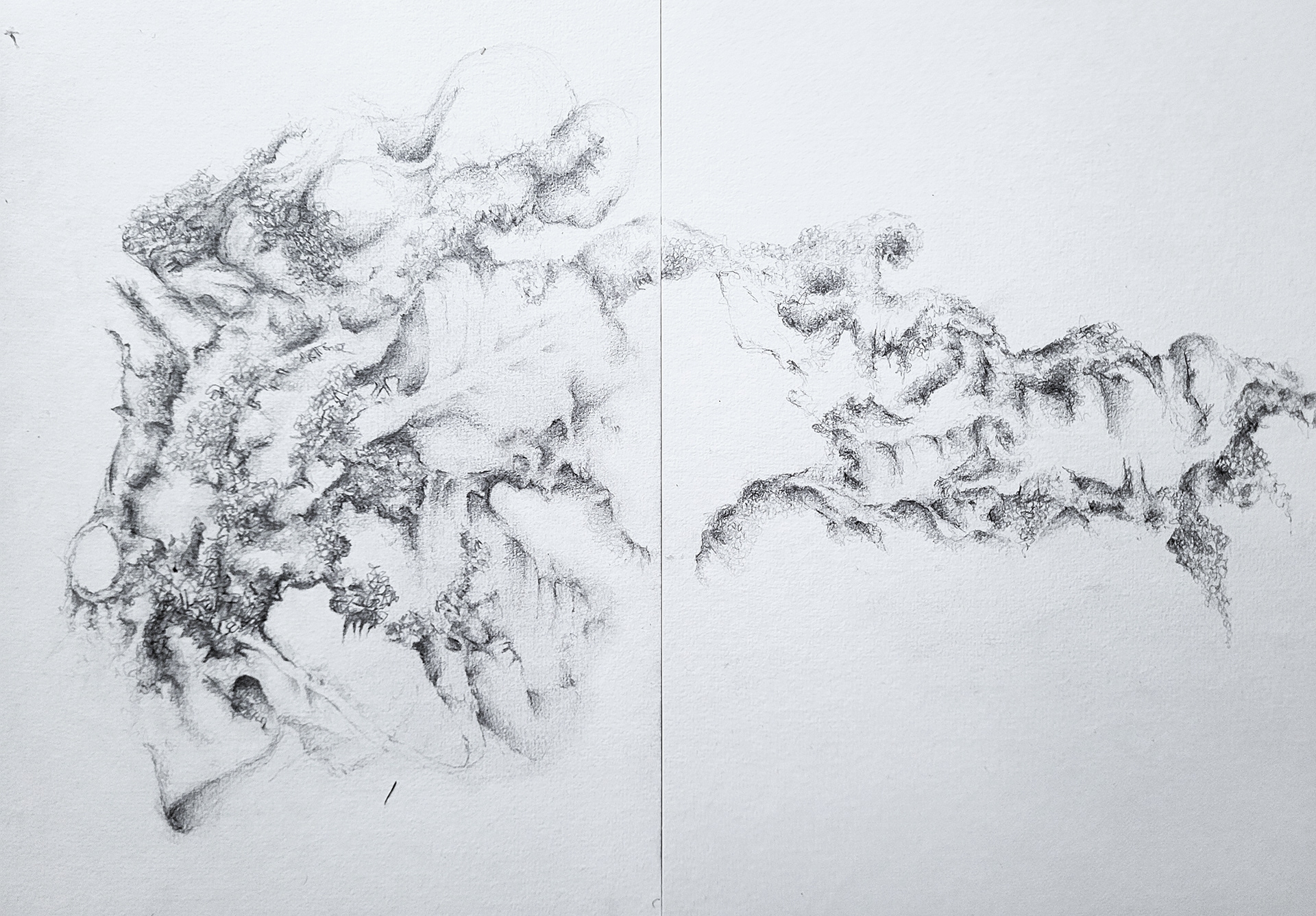 ces dessins jouent des frontières du corps végétal, animal ou minéral