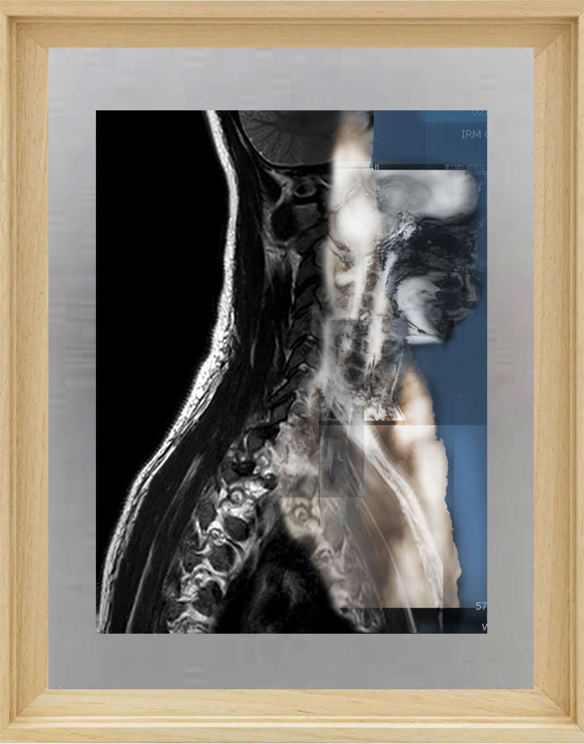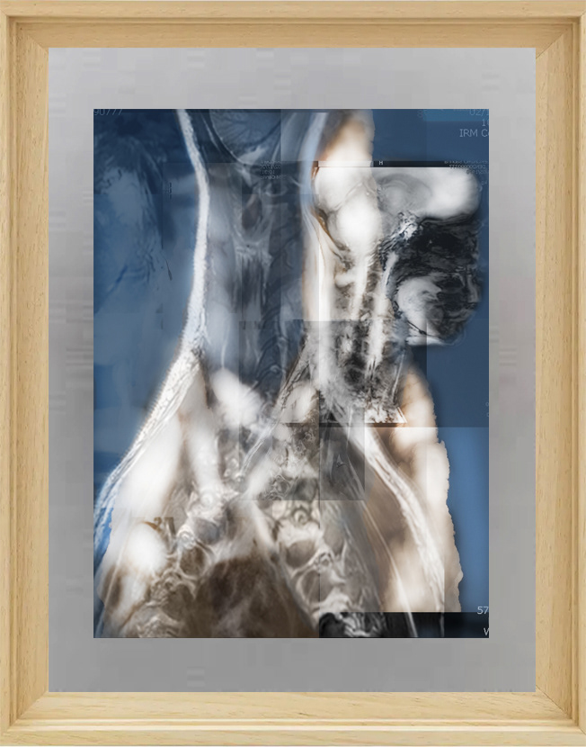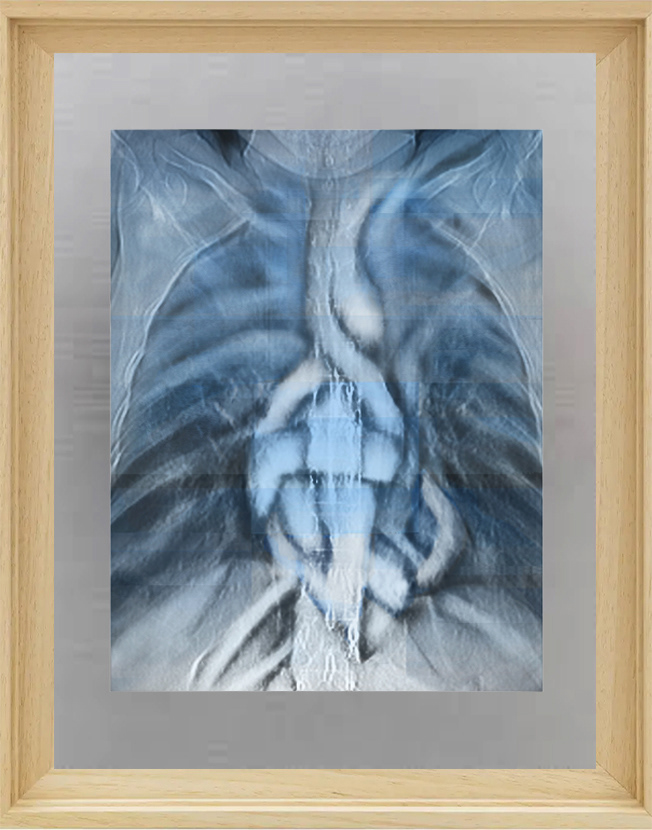Ces images ont été composées peu après la disparition de son père, à partir de radiographies du corps de l'artiste. En superposant des photographies de ciels de Sicile, le corps est ici exploré comme espace de mémoire et de passage. L’imagerie scientifique se transforme en surface sensible. Entre chair et os, métal et bois, visible et invisible, Anatomies du ciel évoque une présence inscrite dans le corps, à la fois celui humain et celui de l’image matérialisée.