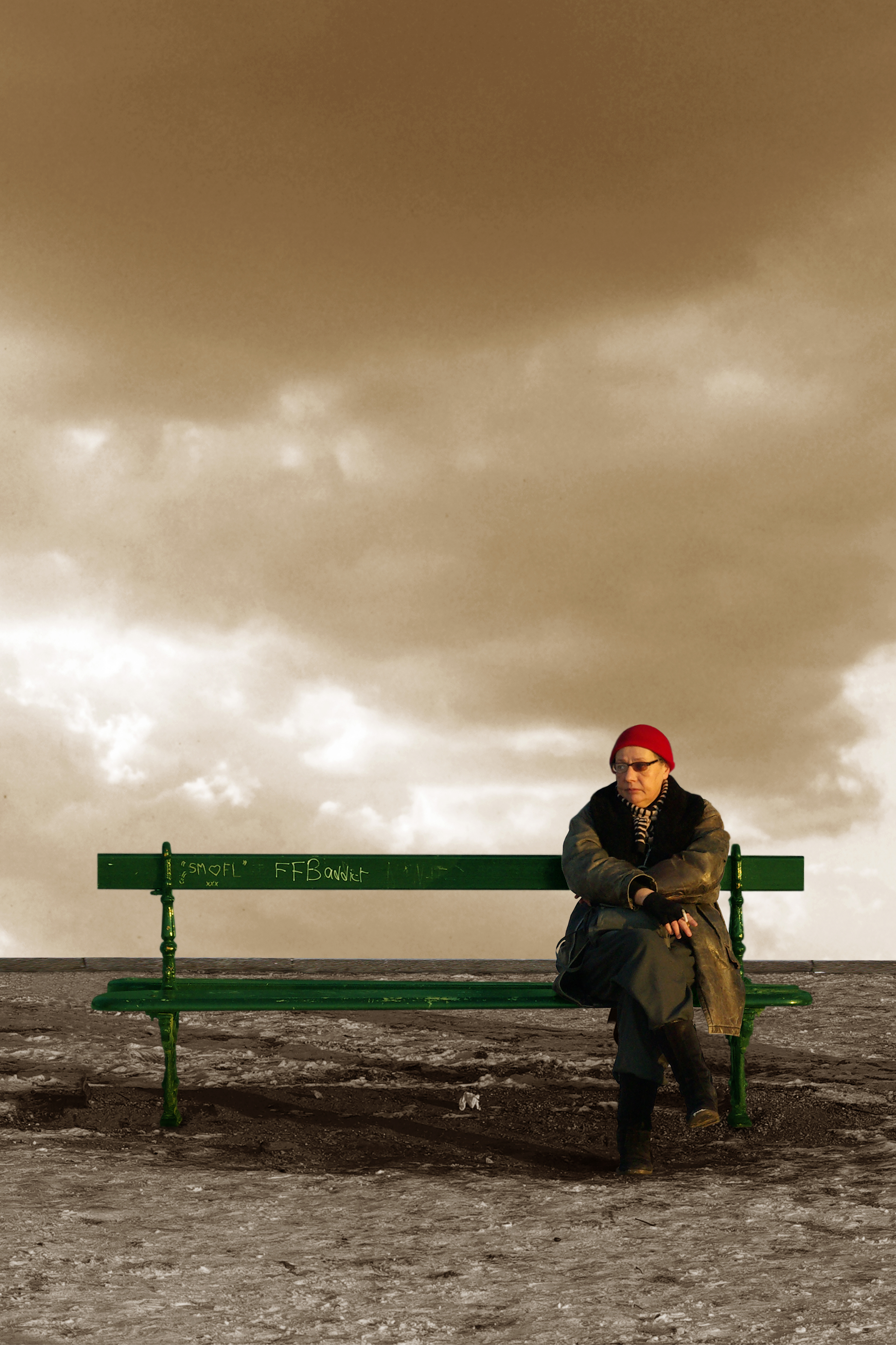 Des personnes souvent âgées, dans une immobilité silencieuse, sont simplement là, assises sur des bancs.